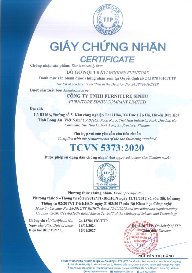Công ty Cổ phần Chứng nhận và Giám định TTP là tổ chức đánh giá sự phù hợp đã có nhiều năm kinh nghiệm trong lĩnh vực đánh giá chứng nhận. TTP là một trong những đơn vị uy tín được Tổng Cục Đo Lường Chất Lượng trực thuộc Bộ Khoa Học Công Nghệ Việt Nam và Bộ Xây Dựng cấp năng lực hoạt động đánh giá, cấp chứng nhận Hợp chuẩn. Giấy chứng nhận do TTP cấp cho khách hàng có giá trị pháp lý và được chấp nhận khi doanh nghiệp làm các thủ tục công bố, kiểm tra của nhà nước.
