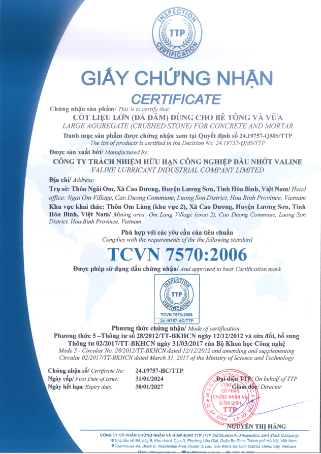 Công ty Cổ phần Chứng nhận và Giám định TTP là tổ chức đánh giá sự phù hợp đã có nhiều năm kinh nghiệm trong lĩnh vực đánh giá chứng nhận. TTP là một trong những đơn vị uy tín được Tổng Cục Đo Lường Chất Lượng trực thuộc Bộ Khoa Học Công Nghệ Việt Nam và Bộ Xây Dựng cấp năng lực hoạt động đánh giá, cấp chứng nhận Hợp chuẩn. Giấy chứng nhận do TTP cấp cho khách hàng có giá trị pháp lý và được chấp nhận khi doanh nghiệp làm các thủ tục công bố, kiểm tra của nhà nước.